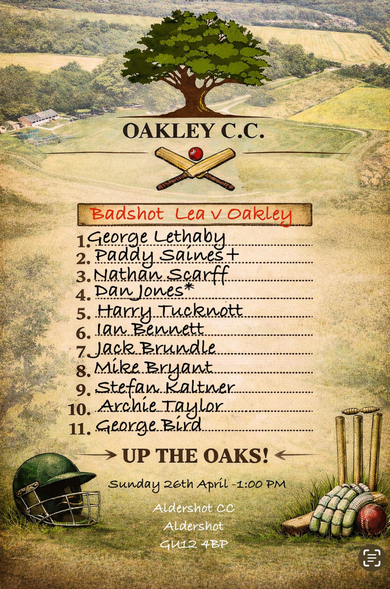 On Sunday, attention shifts to Aldershot where we take on Badshot Lea on neutral ground due to their home pitch still not being quite ready for action. Think of it as cricketing diplomacy.
